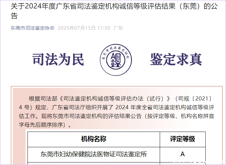 值得一提的是,东莞市妇幼保健院法医物证司法鉴定所凭借过硬的技术实力,在2024年度广东省司法鉴定机构诚信等级评估中荣获最高等级"A"评定,这为SNP基因分型技术的司法应用提供了有力保障。
